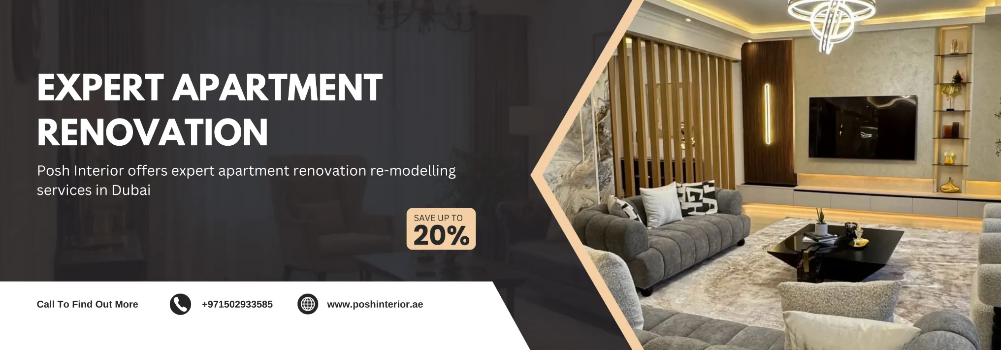 Posh Interior is a supreme renovation company in Dubai and has vast experience in renovating apartments, flats, and studio apartments in Dubai. Schedule a consultation with our apartment renovation contractor today.